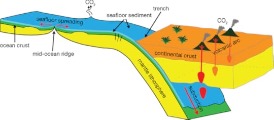 At the same time, at ocean trenches – where two plates converge – plates are pulled down and recycled back into the deep Earth. On their way down they carry carbon back into the Earth’s interior, but also release some CO₂ via volcanic activity.