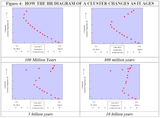 Here is a comparative plot (for open clusters), constructing a “clock” by projected pattern as a cluster ages, in effect seeing what is left as a candle burns down: