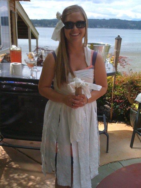 Six hours of driving got me here, wrapping three-ply TP around my friend to make a wedding dress. It was a competition, and I learned that I should have been a fashion designer...