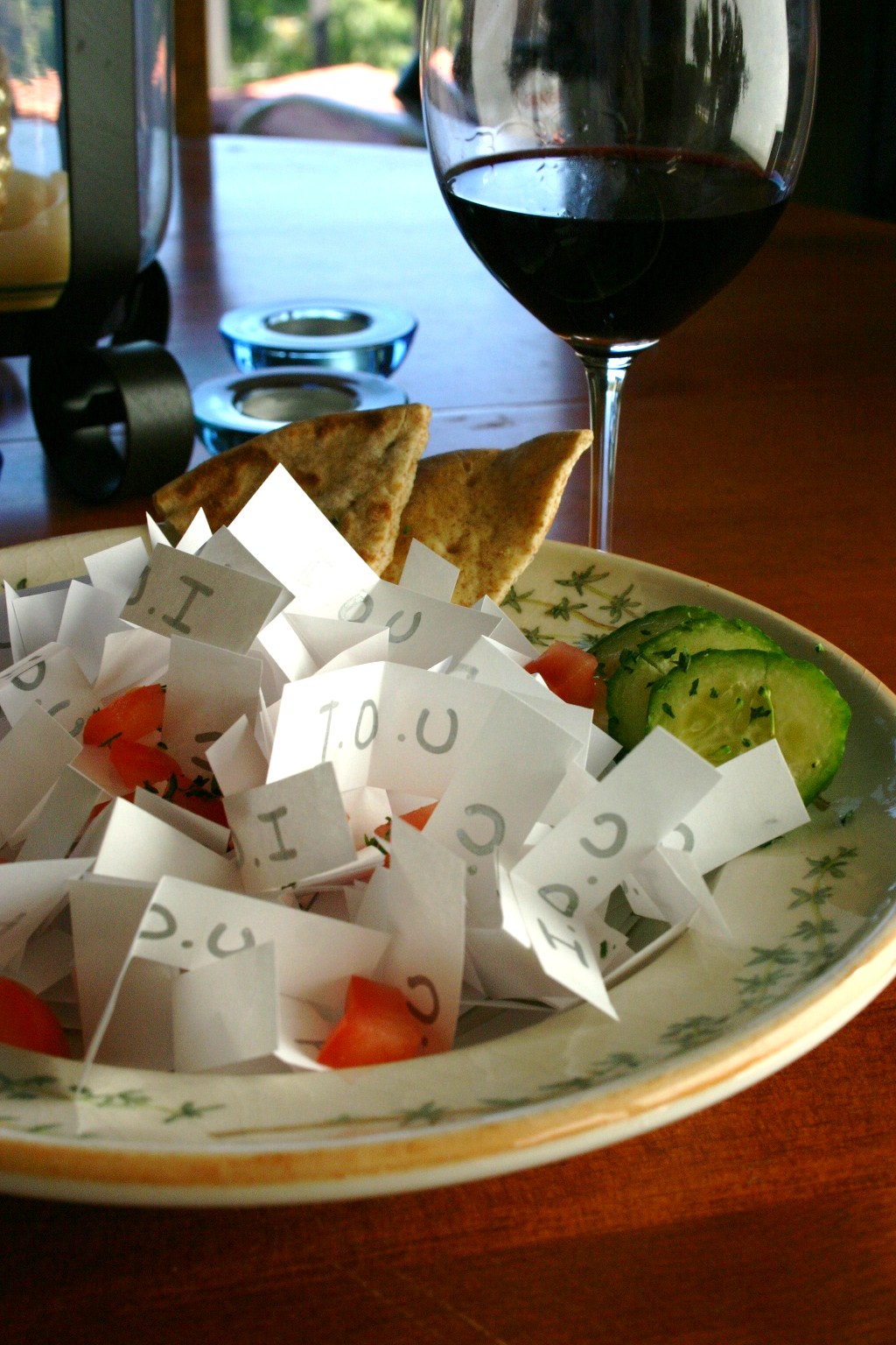My brows stitched together. "What's an I.O.U. Greek salad?" I asked.