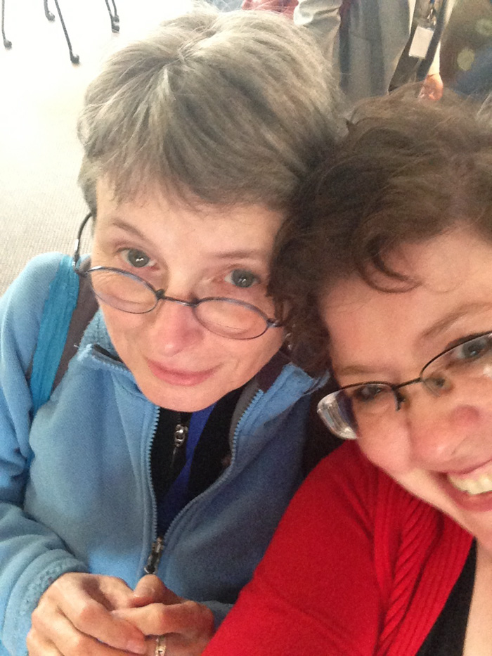 Jan Wright (L) and me - an intrepidly vivacious pair!All too soon, the conference was over. I had Saturday free to look around Wellington a little more. I naturally gravitated to the nearest wool shop, Knit World, and bought some merino possum yarn (Aussie possums are an out-of-control introduced pest in NZ, so hunting is permitted, and their fur is turned into a very soft yarn).