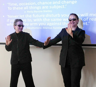 The intrepid American indexer Jan Wright and my delightful Aussie indexing teacher Glenda Browne gave a great presentation about EPUBs and different ways of creating interactive eBook indexes in a range of file formats and outputs. Their talk was entitled The Matrix, so naturally, they both dressed up as Trinity. It had to be done. American programmer David K. Ream gave several presentations on EPUB and eBook indexing. I attended Jan's workshop about embedded and hyperlinked indexing using Adobe InDesign.
