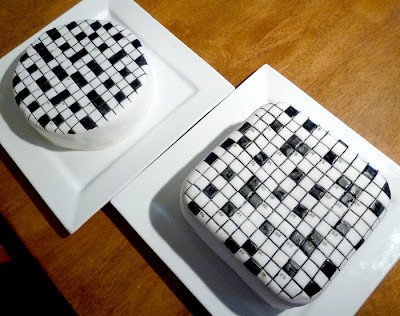 Grid lines!3. Mix up the black paste food colouring in a little bowl, with a few drops of water, to get a nice painting consistency. Practice on some scraps of icing first.