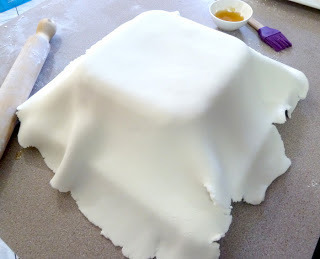 1. You need a basic marzipan and fondant icing coating on the cake. There are many online tutorials and videos on how to do this; I found these two useful:
