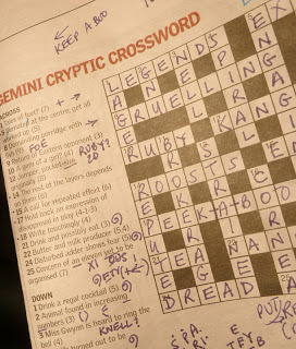 Here's my break down of the clues from the Gemini Cryptic Crossword from The Canberra Times, Monday 13 August 2012. I solved this one on the train up to Sydney (the only civilised way to travel!), on a very foggy wintery morning: