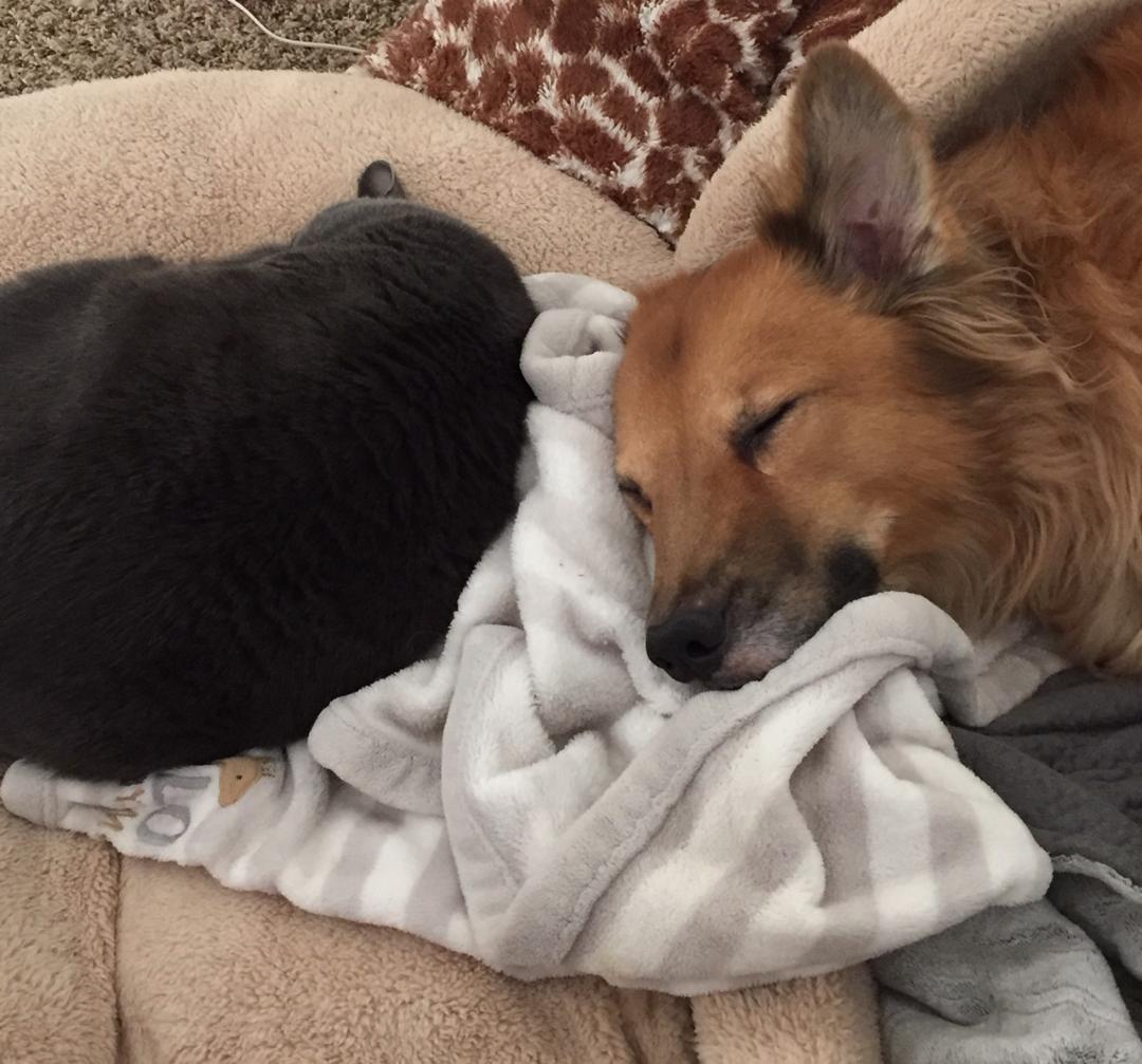 He still loves Purrl, who was only four months old when I brought Thom home,