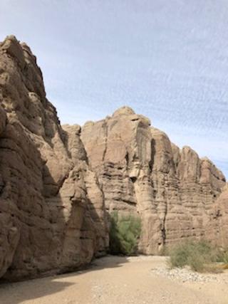 I don't always recommend following the advice of one's dentist (because, trust me, I've had some pretty bad ones), but my current guy (Scott Parker in Calimesa) is really good at what he does, and he's also an avid hiker, bicyclist and mountain climber. After we chatted one day about hiking, he whipped out his phone and showed me pictures of Painted Canyon in Mecca, California (south of Indio, for you SoCal locals who are now searching Google Maps for it).
