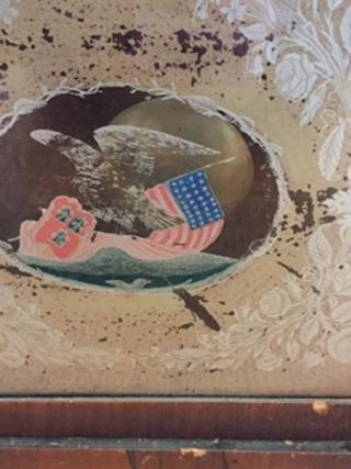 When I moved to Mt. Baldy, I started it up again, but it never quite kept good time, and it seemed to have some other issues as well, so finally, after I became a flatlander again, I had it looked at by a man my neighbor recommended. He was a nice guy, but admitted up front he was just learning the clock repair trade. He took it home, did a bunch of repair and replacement on it, charged me a hundred bucks, and set it to ticking again. When he did, he pointed out that the flag painted on the bottom glass pane had 32 stars. "I was trying to determine how old the clock is," he told me. "If the flag is any indication, this clock was made in the mid-1800's." Oh. Wow....