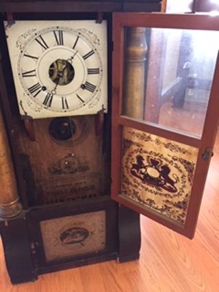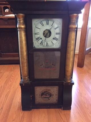 The antique "eight-day" clock pictured above was given to me by a very dear friend a few decades ago after I helped him negotiate a business transaction. When I picked it up, I brought it home, plunked it on a table, and set the pendulum to swinging. My kids thought the hour chime was loud and annoying, so I stopped it and just let it sit as a conversation piece (though I can't recall anyone ever remarking on it).