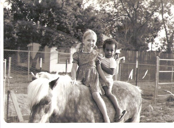 Me, a tiny ten-year-old, with one of the best friends a girl could have, in our back yard.The truth is, having her changed all our lives.