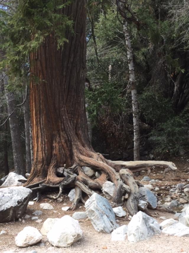 Many years later, after my children were having children of their own (and I had happily disassociated myself from both my former husbands), on a beautiful early spring day, I picked up three of my grandchildren for a day’s outing. Ben, Ellie and Reese were ten, six and four at the time—the perfect age to wander around in oak duff, get dirty, freeze their fingers in the stream, find rocks and sticks that are “pretty,” and marvel at the height of trees. Of course I took them to Forest Falls. They were so young, I doubt they remember the trip. I will never forget it. In less than two years from that day I would be living in a cabin on a mountain myself, and they would come to Nana’s house to do all those same activities (including feeding the bluejays and woodpeckers), but that first time in the mountains with them was priceless.