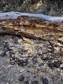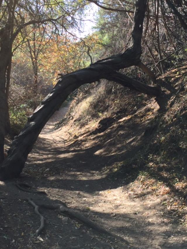 Further bear signs here: This log was shredded by someone looking for termites or ants to snack on.The deceptive thing about this trail is that it follows a gentle downhill decline past blackberry bushes and beautiful oak, sycamore and elm trees, into the quiet of the woods where bluejays jump from tree to tree. It's magical. Until you get to the far side of the property and realize that, yeah, you have to go up as much as you went down. Only the ascent is not gradual....