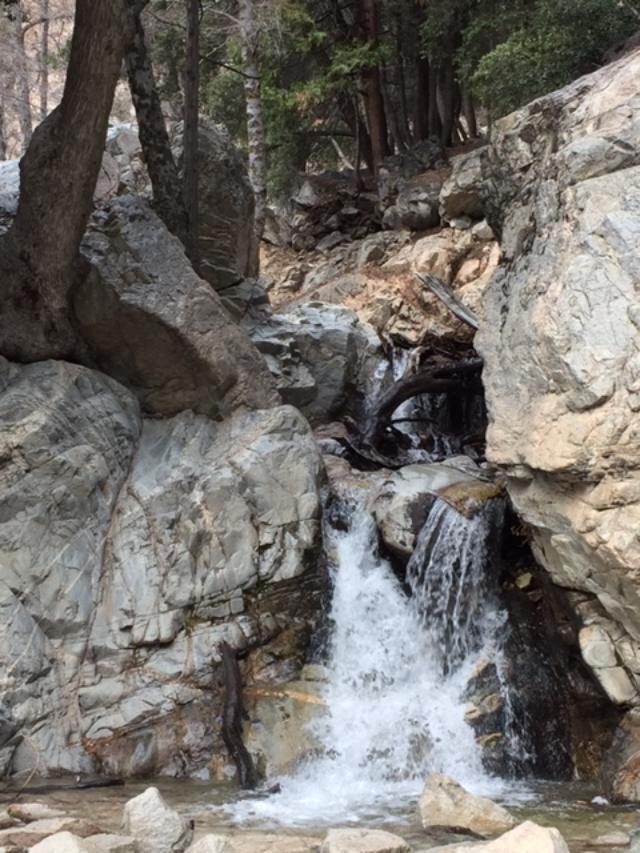 I have an old faded photo of the waterfall in Forest Falls from 1970. I could not copy it here as my then boyfriend is in the photo, standing above the falls with his arms outstretched. I have his number… I suppose I could have called him to ask his permission to use the photo… but look, I took a new one! And trust me on this: The waterfall is the same now as it was when I was sixteen.