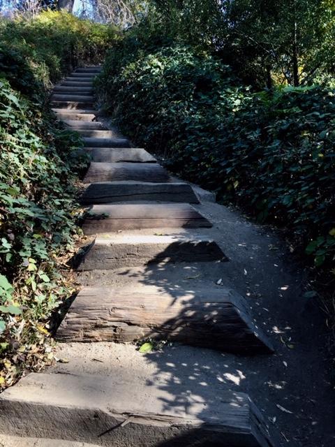 ... and going up, up, up for someone with diminished lungs is quite a challenge... which is why this is the perfect hike for me. I do have to stop occasionally and force some air into my poor lungs, but that's a good thing. "Vigorous exercise" is what the doctor ordered back in 2012 when this malady was diagnosed, so vigorous exercise it is. Besides, when you finally top this incline, you end up in the oak grove where the picnic area is.