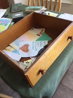 So today I finally (after quite a few years), went through my nightstand drawer, the place where I keep the cards my kids send me and other precious mementos.
