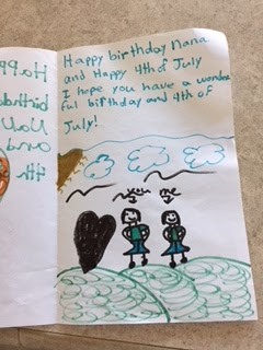 But I did find an abundance of other treasures, including a birthday card The Youngest Granddaughter made for me—yes, that granddaughter, the one who just started college. I have treasured it all these years for the way she depicted us together.