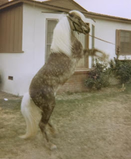We probably would have continued to live on Eberle Street in our little Lakewood housing tract if Peg hadn't won the contest. But clearly you can't keep a pony in your back yard, so she had to be boarded at the nearby stable... which was a financial burden to our mother, who had become the sole breadwinner even before my father's death from a rare disease. Mom decided to put our childhood home up for sale, and she found an affordable house a few miles away in a residential area that was zoned for agriculture, so we had a barn and corral in the back yard. Right next door lived the man who would later become my wicked step-father....