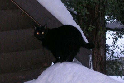 And that was a problem at times; I had to watch the door constantly or she would dart out behind my back. Her curiosity often got the best of her, even at night... in the snow.