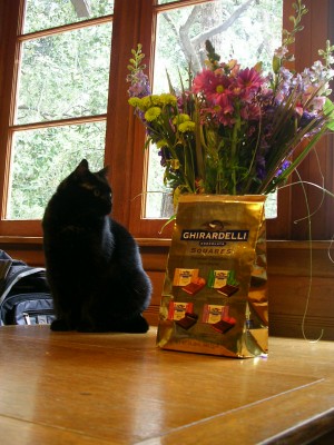 She loved flowers. Often on special occasions, my son would visit with a bouquet, announcing as he entered the cabin, "I brought your cat some flowers."