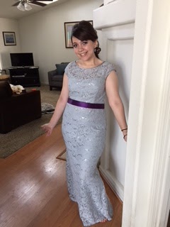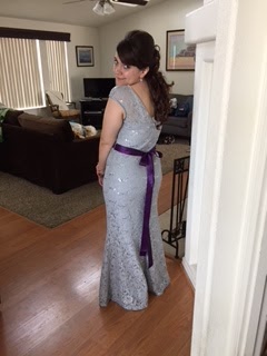 About that beautiful silver dress.... (If you haven't read that story, just scroll down to the post below this one.) The dry cleaners (Eco Cleaners on Oak Valley Parkway--it's a family-run business, and I love them) sent me a text on Thursday to let me know the gown was cleaned and altered and ready for pick-up. When I went to get it the next day and the owner walked out with it all gleaming in its plastic sheath, I thought it was the wrong dress. It had transformed into a bright flashy silver with all the sequins lighting up like tiny stars. Wow! And what do you know, just like the glass slipper on Cinderella, the thing fit absolutely perfectly when The Granddaughter tried it on.