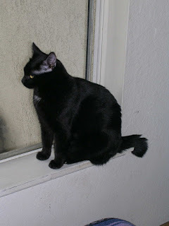 In the summer of 2006, my little black hellion Calpurnia died, leaving me with just Boo, the little flea-and-worm-infested kitten who'd grown into a gorgeous panther after I'd brought him home from work at the request of a student because kids were trying to stone him to death. (You can read Boo's story here.) Boo and Cal were never what you'd call close, but after a few months I wanted to make sure he had another cat around, so I walked into my local Petsmart, went to the cat condos, and saw a small black cat I assumed was a kitten or at least a juvenile. I called the number for the rescue (H.O.P.E. or Helping Out Pets Everyday [sic]), and the conversation went (I kid you not) like this: