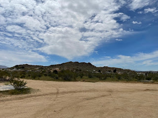 We've gone fifty yards when I realize I left my hiking pole in the trail when I stopped to examine Maya's paw. We have to go back for it, back toward the coyote's hiding place. Maya limps slowly beside me, I finally pick up the pole, and we reverse direction, heading back up the trail toward the truck. It's a long slog. We were nearly to the farthest point out when we saw the coyotes. Now we've got a mile to walk back. And even though it's only 7:30a.m., it's getting hotter by the second.