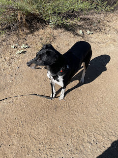 Next item on our hiking agenda: Get the hell out of there and back to the truck. Sadly, Maya is now limping badly on her left front paw. When I find a sandy section of trail surrounded only by low foliage, I bend down to check her foot, grateful that finally, after three years, she will let me touch her feet when she picks up a thorn so I can pull it out. There is nothing in her foot pad this time, though, as I suspected. When we stopped on the trail to watch the coyotes, I realized too late we were standing near an ant's nest. I suspect she's been bitten. She licks her paw over and over, then looks up at me. I know exactly what she's thinking. It's this: