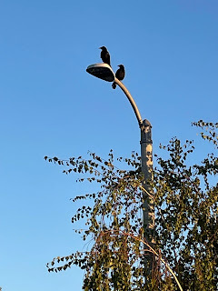 It’s likeTrick or Treat; I count the number of crows and dole out that same number ofpeanuts, lobbing them out into the street, then returning to the house to watchthe birds at the buffet.