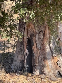 A fire in thefall of 2016 burned much of this side of the hill down to rubble. Black ash isstill visible in the soil along the trail. But look at these oak trees. Strong.Steadfast. Beautiful. How old is this one? How many fires have threatened it?Still it endures.