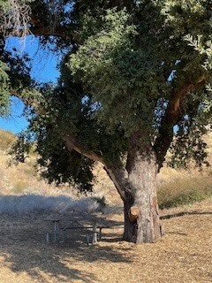 The last oakwe pass before taking the steep trail back up toward the parking lot boasts apicnic table beneath it. Maya waits patiently as I snap a photo… and I imaginemyself sitting down with a book or a notebook and a snack, whiling away a fewhours in the shade… in the quiet… in the solitude.