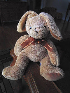 I just love that he loves her so much, because in those first hours with me, when he was dazed and confused, recovering from neuter surgery (though not ready in the least to begin recovering from all the trauma that occurred to him before he was rescued), I didn't know what to do to comfort him, and I questioned whether giving him my favorite bunny meant anything to him at all. Turns out it did.