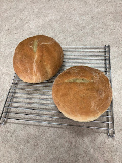 To celebrate, I took a long nap. When I got up, I shaped my lovely mound of dough into four smaller mounds, let them rise one more time, and then put them in the oven.