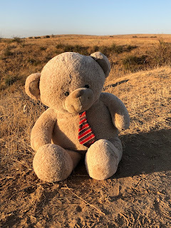 Isn't he handsome? I love bears. People think I love giraffes--and I do, don't get me wrong--but my first love will always be bears. Stuffed ones, live ones. Doesn't matter. I have bears all over my house, in one form or another (mostly stuffed). And in my car. (Ask my sister, who sometimes rides shotgun. Raggedy Bear travels with me wherever I go.) I can't imagine what prompted someone to toss this dude out, especially when he was dressed so nicely.