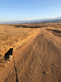 Despite the heat, skies have been beautiful here lately, and I owed Maya (and myself) a long walk out in the hills to clear the cobwebs and to be reminded that Nature is still magnificent (even if what we see on TV isn't), so Saturday morning we left the house early for one of our favorite spots in the rolling hills just south of town. I also wanted to see how Maya would do on the fifteen-foot leash I bought for our hikes.