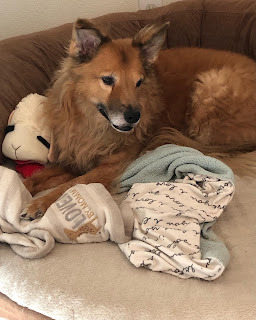 At fifteen, my boy is an old guy now, with arthritis in his shoulder and hips and back. Last year I spent a thousand dollars on tests to try to discover, once and for all, what initiates the on-going issues with his sensitive gut. Turns out he has Irritable Bowel Syndrome due to his chronic anxiety. So now he has multiple meds for anxiety, IBS, and arthritis. Some days are tough, when his belly hurts. Some nights are even tougher, when we’re up four or five times—especially in winter—going out to the yard. Good thing I’m retired and I can nap during the day….