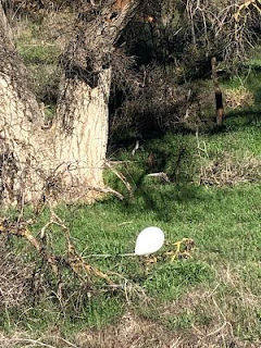We were headed for the trail that would lead us home when we saw a flash of white, so we stopped once more, and, oh look! A balloon!