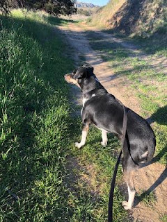 Last Sunday, I needed to get out, to get away from everything demanding my attention at the house (except the furries; they never demand, they ask nicely and wait patiently), so of course, I took to the hills just west of me (and just south of Calimesa, if you live here and wonder where I roam). Since Maya has decided that the best thing about coming to this new, strange home (besides the good food, the treats, the peaceful quiet, and the opportunity to go outside to relieve herself more than once a day) is hiking, of course I took her. She is great company on a hike because she is as curious and excited about everything around her as I am.