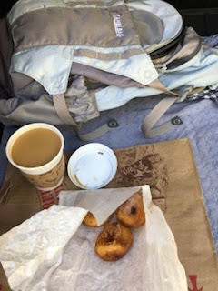 This is how I celebrated upon returning to my car: Apple cider mini-donuts and a cup of coffee. O, how joyous!