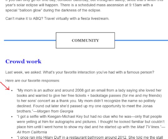 #1: Being (kinda) roasted by my young adult daughter in front of … oh, I don’t know … 5 million peoplePicture me relaxing with my morning coffee one Sunday in October (October 8, 2023, to be precise) and getting this in a team group text from my former staff director. “Shaunti – This was in today’s Morning Brew. Ummmm, please tell me this wasn’t you…”