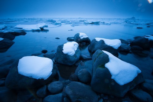 When I was in Hokkaido in January I was captivated by the snowy-headed rocks you see at the top of this post. A circle of elders? Something about companionship? I wasn’t sure, but I loved the repeated elements, the way they sat there on the edge of nothing, seemingly waiting together. I loved the circle they formed. But there was much about it that I didn’t love. It just didn’t work for me. But that doesn’t mean I didn’t work for it. I made several frames, played with the shapes, asked myself questions, and then filed it away, not as a failure but an idea I need to work on.