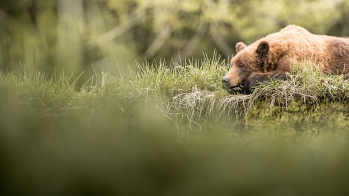 One of the things I wanted from this work, once I began to figure out what the place was for me, was a warm, calm, consistent colour palette, and I wrestled with it for a while because the greens in this place are so visually massive, and pull the eye so much, that they were almost neon and drew my attention away from the bears. So I created a preset in Lightroom that pulled the greens back a little – less saturation, and less blue in the hue of the greens. I added some clarity to draw attention to the texture, and I pushed my colour temperature a little, though I shot on cloudy most of the time, so often I had to pull it back towards cooler. I think one of the things painters and other visual artists do well is pay greater attention to their colour palettes and that’s something I’m trying to be more intentional about. In the end I think I managed to create something with the kind of mood and magic I felt about the place, and the bears, and allowing the gesture in the frame to speak for itself.