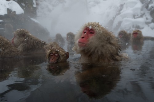 A quick postcard from Yamanouchi, near Nagano, Japan. We’re three days into a workshop with Martin Bailey, and have spent those three days photographing the Japanese Macaque, or Snow Monkeys. This is the only place in the world where the monkeys have taken to hot springs, and like the wildlife in the Antarctic, these monkeys are just completely indifferent to human presence. That indifference is a good thing because the monkeys are wildly popular and while I had a tremendous time photographing them, my experience was somewhat dampened by the aggressive behaviour of the some of the groups of photographers that show up here. It’s a lovely spot, though, and after a 30-minute walk through snowy forests, it’s a treat to spend time so close to such interesting animals.