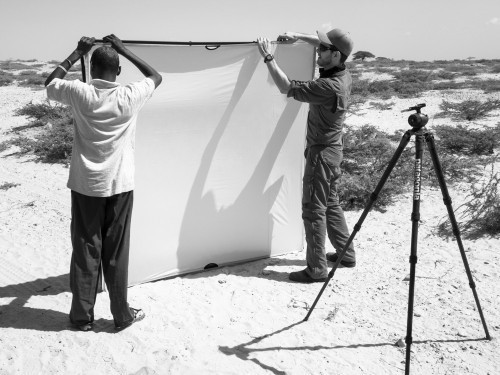 The set-up was simple. For the most part we shot under the shade of an Acacia tree, with the ScrimJim held behind my subject by Corwin and almost anyone else we could recruit. It blew around a bit so better to have humans involved than stands that blow over and have to be moved as my subjects, and the light, shifted. Sometimes we were lucky enough to have the shade provided by a simple structure or small building, but it was mostly out in the open. Occasionally we also used the pop-out, oval-shaped Westcott Illuminator Reflectors, mostly the 2-Stop diffuser, held high over the subject or to the side, to further cut the light and open the squinted eyes a little. That too needed modification as the largest of them, the 48″x72″ is pretty large even folded. So we drilled the rivets out, replacing them with nuts and bolts. The spring-steel core was then removed and coiled tight for the flights to Africa, where we took 10 minutes to rebuild them. The last picture below shows how much smaller the coiled steel, and folded panels, are next to the usual size. Way easier to throw into an Extra Large North Face Base Camp duffel. Without these mods, there’s no way we’d get them to Kenya. If I do work like this again, I’ll bring two, maybe three, of the ScrimJims and leave the pop-up reflectors at home. They were harder to work with and a right pain in the arse in high winds. Wish some straps you could connect the ScrimJim frames together into something semi-rigid that would be easier to handle. Thanks to Westcott for all the help with this. They went the extra mile for us, and the gear was perfect.