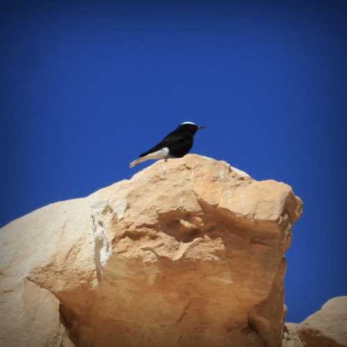 Not the best capture, I realize, but it is not often I get to post under the letter ¨W¨! The White-crowned Black Wheatear (Oenanthe leucopyga) is only one of several different wheatear species found in Egypt – and one of the more common birds seen in Sinai. They are easily spotted as their little black-and-white bodies dart between rocks. In Sinai, you´ll also find the black-and-white Mourning Wheatears and Hooded Wheatears.