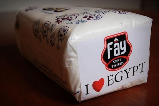 When my hubby brought these tissues home the other day, I just had to get a shot! While we have always preferred to buy products made locally, many people living in Egypt – both locals and foreigners – prefer products imported from abroad. But with many Egyptians' new-found pride in their country, and in an attempt to aid the recovery of the local economy, companies have begun to show off the fact that their products are made in Egypt with new labels and "I love Egypt" stickers.