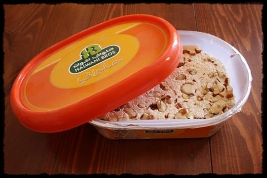 Halawa tahiniya, or حلاوة طحينية, is one of my favorite sweet snacks in Egypt. Halawa means "sweetness" in Arabic and is made from tahina, a sesame seed paste, and sugar. It is typically made and sold in blocks that you can purchase from the deli section of local shops. You can also buy it in packages like the one pictured above. Traditionally, halawa is plain but today there are many varieties available – chocolate, almonds, hazelnuts, and pistachios. Halawa is usually eaten in a sandwich (hot or cold) on baladi bread, the pita-like local bread. Although it is not unusual to see people simply dig in with a spoon!