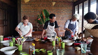 The cooking process begins around 12 noon in the open kitchen of Bella Cucina. This is a hands-on cooking class where you will be taught to cook four Balinese seafood dishes using the ingredients you purchased earlier. The selected and famous dishes are Crab Soup, Squid Lawar (a traditional Balinese salad), Pepes Udang (steamed prawns wrapped in banana leaf), and Fish. All the dishes here are seafood centric, which is the specialty of this cooking class. At around 2PM you can relax in the opulent indoor dining room of Bella Cucina and sample your delicious preparations. You are also allowed to pack and/or take-away your lunch, in case you want to share it with your loved ones at home. A recipe book will be handed over at the end of the class for your future referrals.