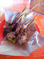 As you walk and dance around sampling the sweet and spicy intersections wherever they meet, you will be amazed to see live coals in the stalls where meat is charred and grilled to perfection. It is fascinating to watch the chefs cook with their varieties of tossing, flipping, sautéing and sprinkling exquisite Indonesian spices. Some of the food stalls serve plates of ready-to-go food items behind glass, and you can choose what you want to go with rice. Some of the favourites are Perkedel Jagung (corn fritters), Terong Pedas (spicy eggplant), Tempe (soy bean cake), and Balinese style mixed vegetables. You can also find Lawar (coconut and vegetable dish with bits of crunchy pork), Bakso (Indonesian soup with meatballs), different versions of chicken, beef, lamb and fish. Fried pancakes and egg rolls are some of the other foods prepared in different ways.