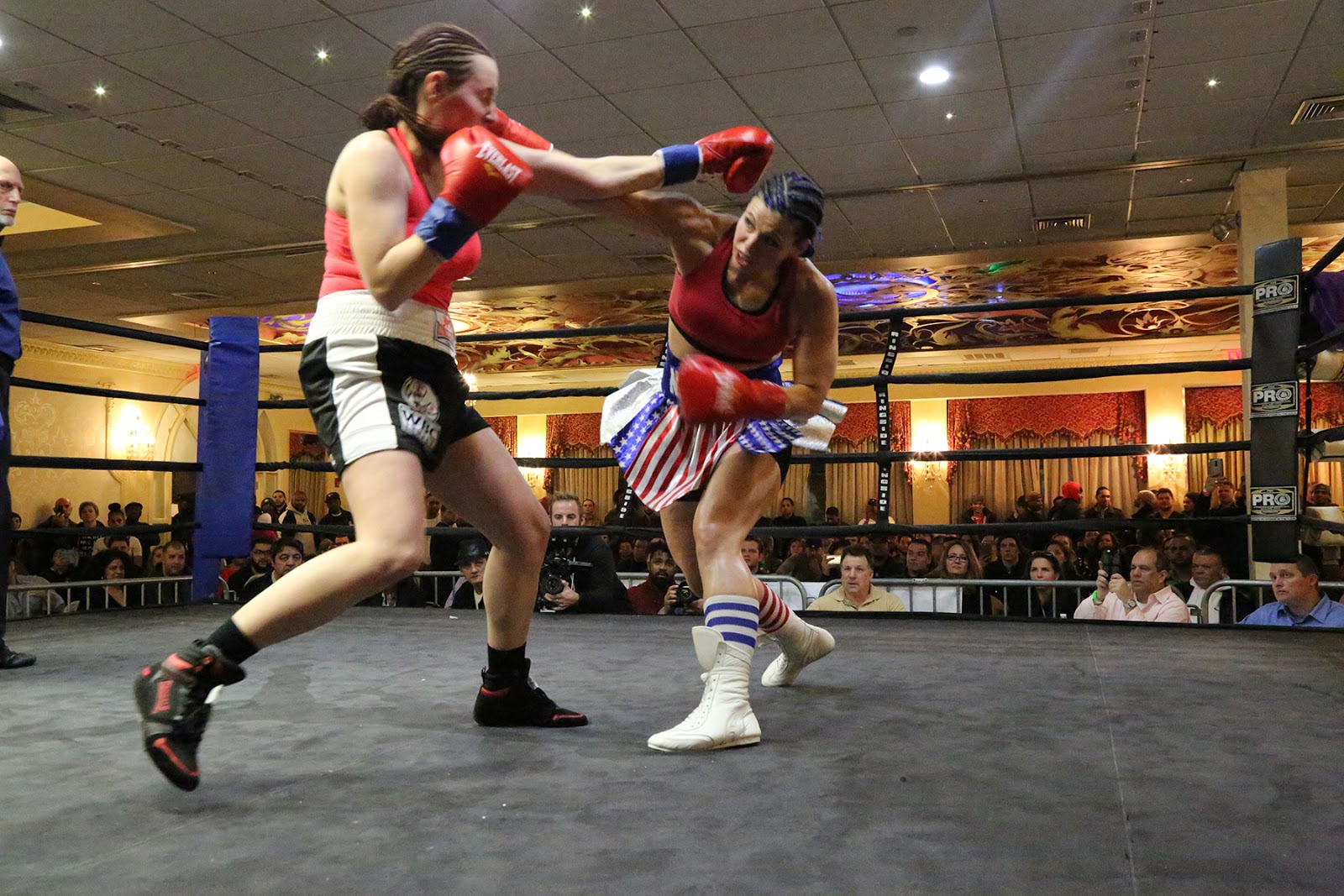 Head trainer Alicia Napoleon (The Empress, L) is an undefeated champion. This is a championship fight in Queens. Photo, Clayton Patterson.