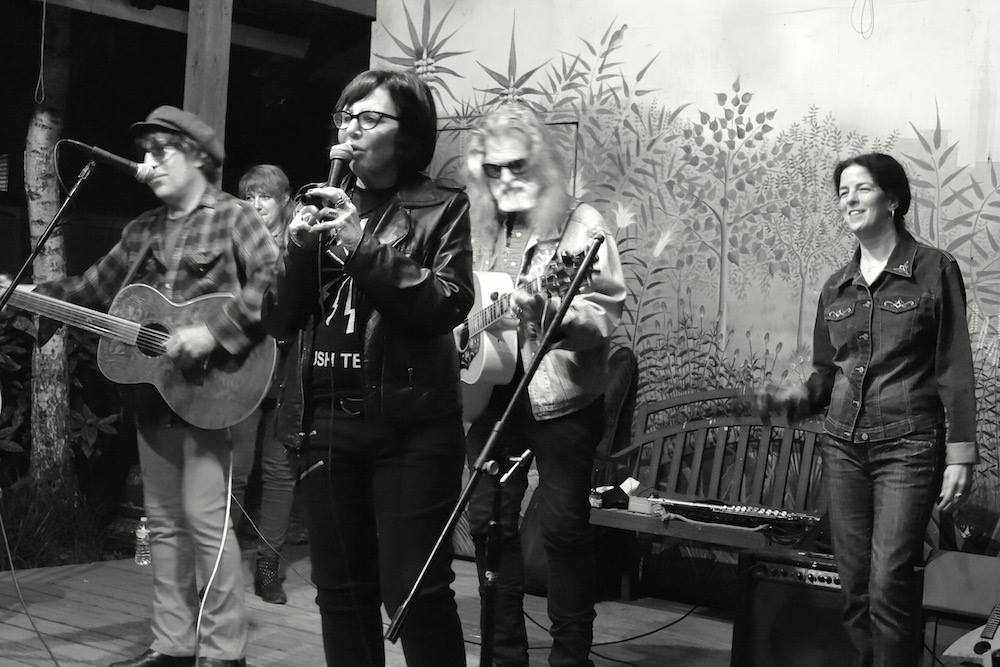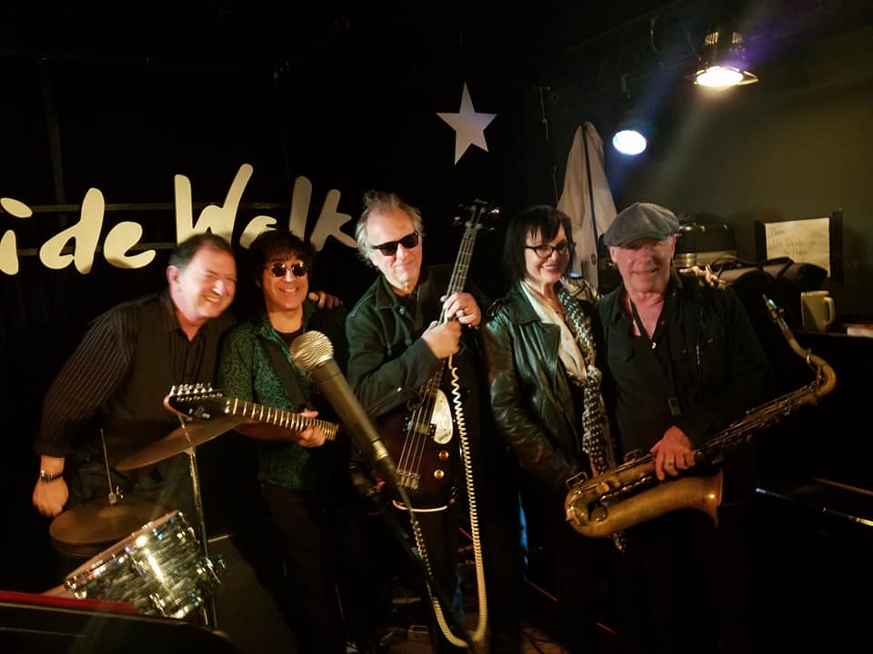 June 6, 2018, Puma Perl and Friends played Sidewalk Cafe to celebrate Joey Kelly's birthday. Friends were (l-r Dave Donen, drums, Joff Wilson, guitar, Joe Sztabnik, bass, and to my right, Danny Ray, sax. Photo by David W. Stoler.